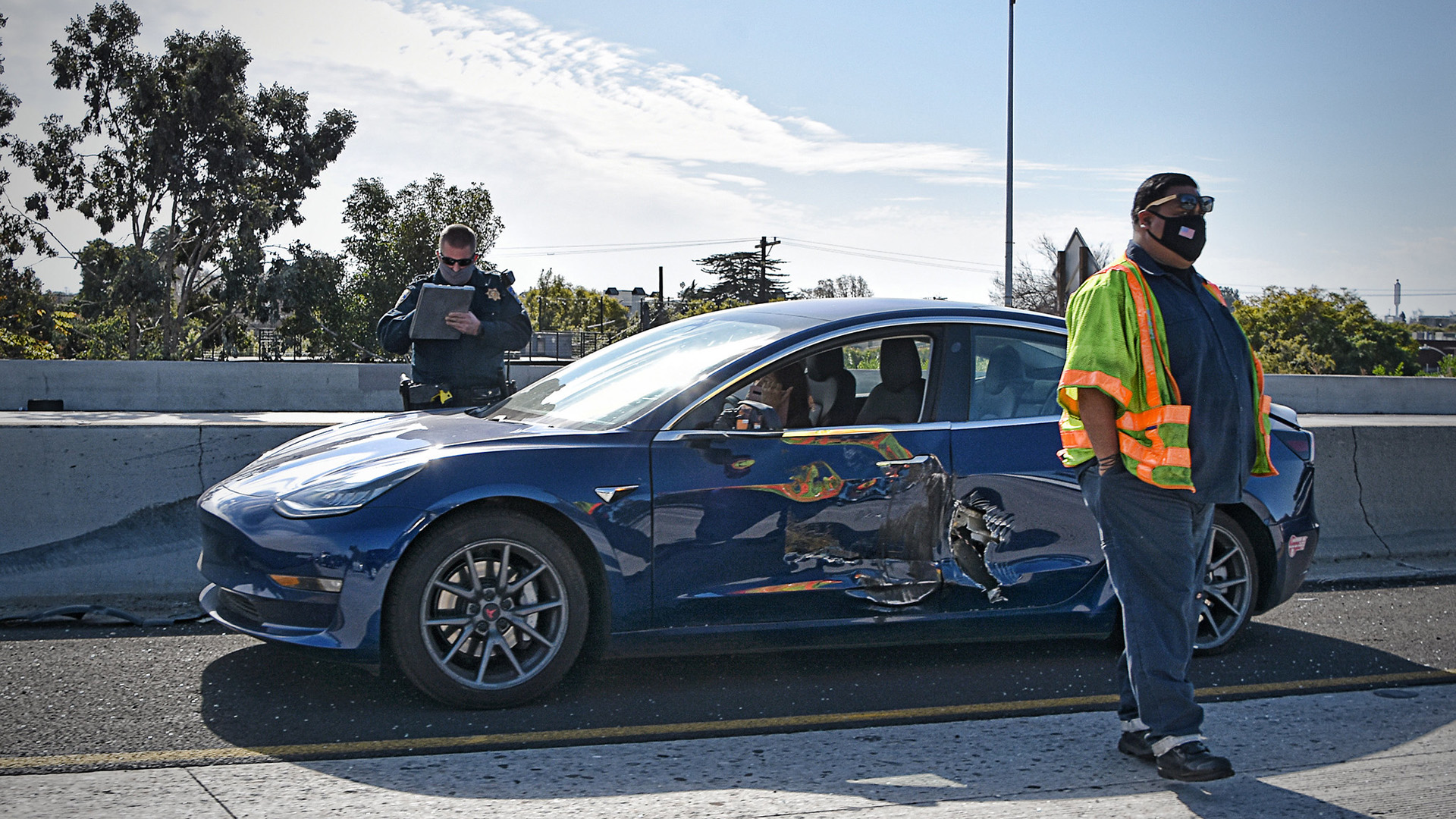 Whether or not the battery was damaged during the accident, no diagnosis is made. However, the cost of a replacement battery and its labor exceeds the authorized repair values, so the car is generally sent to the scrapyard.